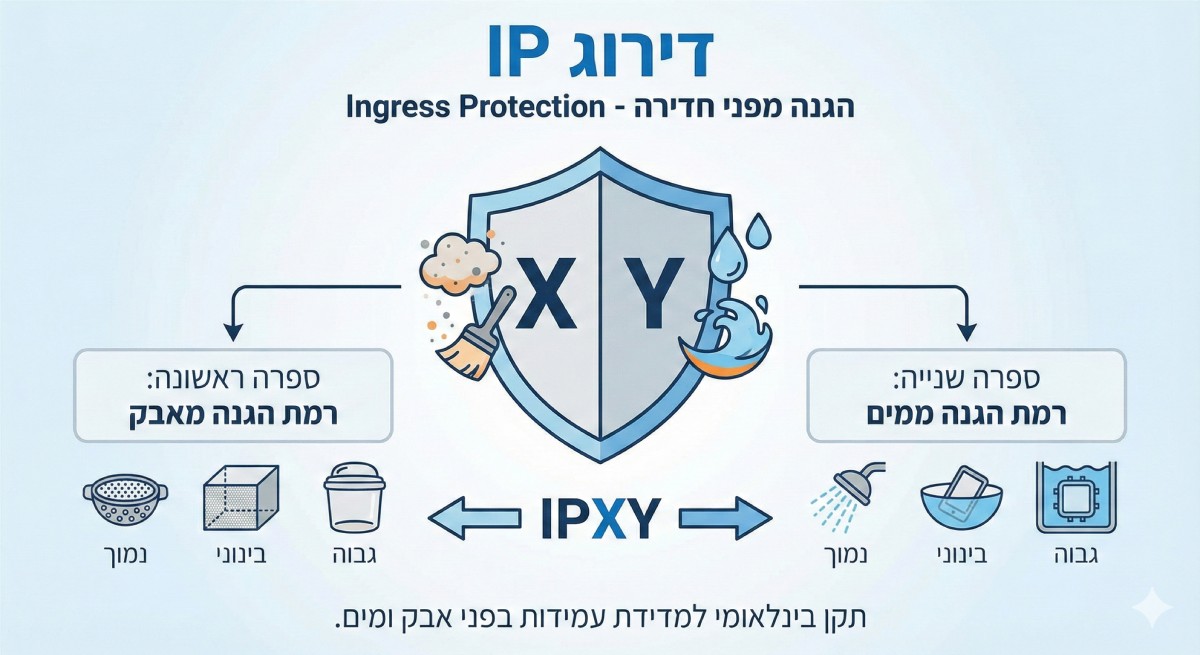 טעויות נפוצות שכדאי להימנע מהן❌ 1. "IP65 זה מספיק" — לא לגינהIP65 עמיד רק להתזות. ברגע שהמוצר שוכב בשלולית או נרטב מכיוון לא צפוי — הוא גמור. ❌ 2. לבחור IP גבוה אבל לא לבדוק חיבוריםהגוף יכול להיות IP67, אבל אם המחבר או הספק לא אטום – כל הדירוג לא שווה כלום. ❌ 3. לא לקרוא את הפירוט של IP68IP68 אינו תקן אחיד! צריך לבדוק עומק וזמן טבילה בפועל לפי היצרן. איך לבחור בפועל? 3 כללים פשוטים✔ כלל 1: אם יש סיכוי שהמוצר ייחשף למים עומדים — קח IP67 ומעלהגם אם "לא אמור להירטב" – המציאות מוכיחה אחרת. ✔ כלל 2: לכל התקנה תת-קרקעית או קרובה לאדמה — IP67 חובהרטיבות מצטברת מחלחלת מהר מאוד ופוגעת ברכיבים. ✔ כלל 3: לבריכות / מזרקות — רק IP68כאן אין מקום לפשרות – חייבים דירוג שמיועד לטבילה ממושכת.