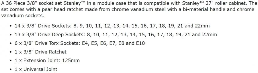 | 7456733 סט בוקסות מקצועי ''3/8 - 36 יחידות - STANLEY STMT1-74174 | STANLEY | סט בוקסות מקצועי ''3/8 - 36 יחידות - STANLEY STMT1-74174 ♦ מסדרת STANLEY TRANSMODULE SYSTEM &nbs... ארגזי כלים ופתרונות אחסון » פתרונות אחסון ושינוע לרכיבים וכלי עבודה | כמות | |