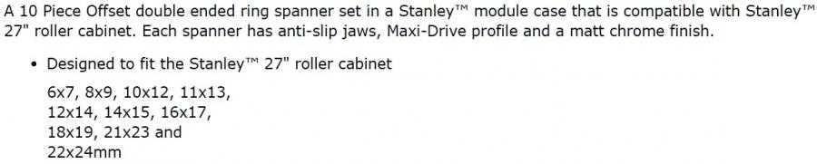 | 0556733 סט מפתחות רינג מקצועי - 10 יחידות - STANLEY STMT1-74177 | STANLEY | סט מפתחות רינג מקצועי - 10 יחידות - STANLEY STMT1-74177 ♦ מסדרת STANLEY TRANSMODULE SYSTEM  ... ארגזי כלים ופתרונות אחסון » פתרונות אחסון ושינוע לרכיבים וכלי עבודה | כמות | |