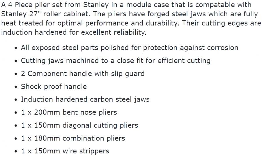 | 9729082 סט פליירים וקטרים מקצועי - 4 יחידות - STANLEY STMT1-74179 | STANLEY | סט פליירים וקטרים מקצועי - 4 יחידות - STANLEY STMT1-74179 ♦ מסדרת STANLEY TRANSMODULE SYSTEM&n... ארגזי כלים ופתרונות אחסון » פתרונות אחסון ושינוע לרכיבים וכלי עבודה | כמות | |