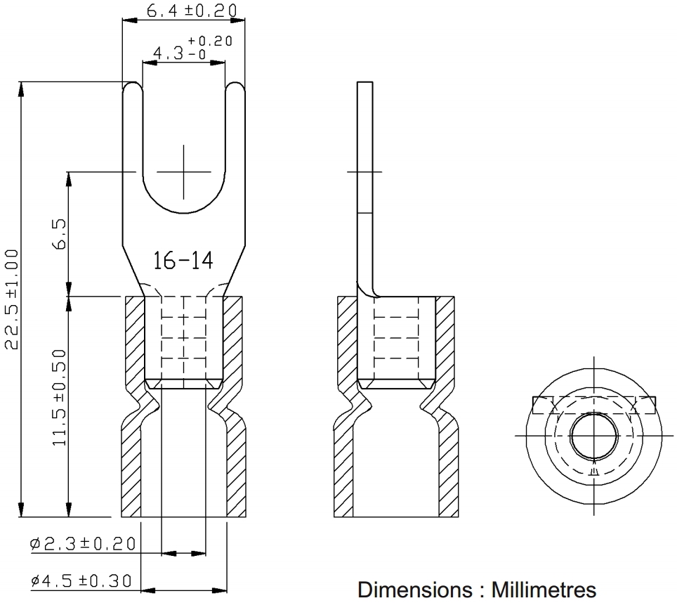 ♦ עבור כבלים : 1.0-2.6MM , 16-14AWG