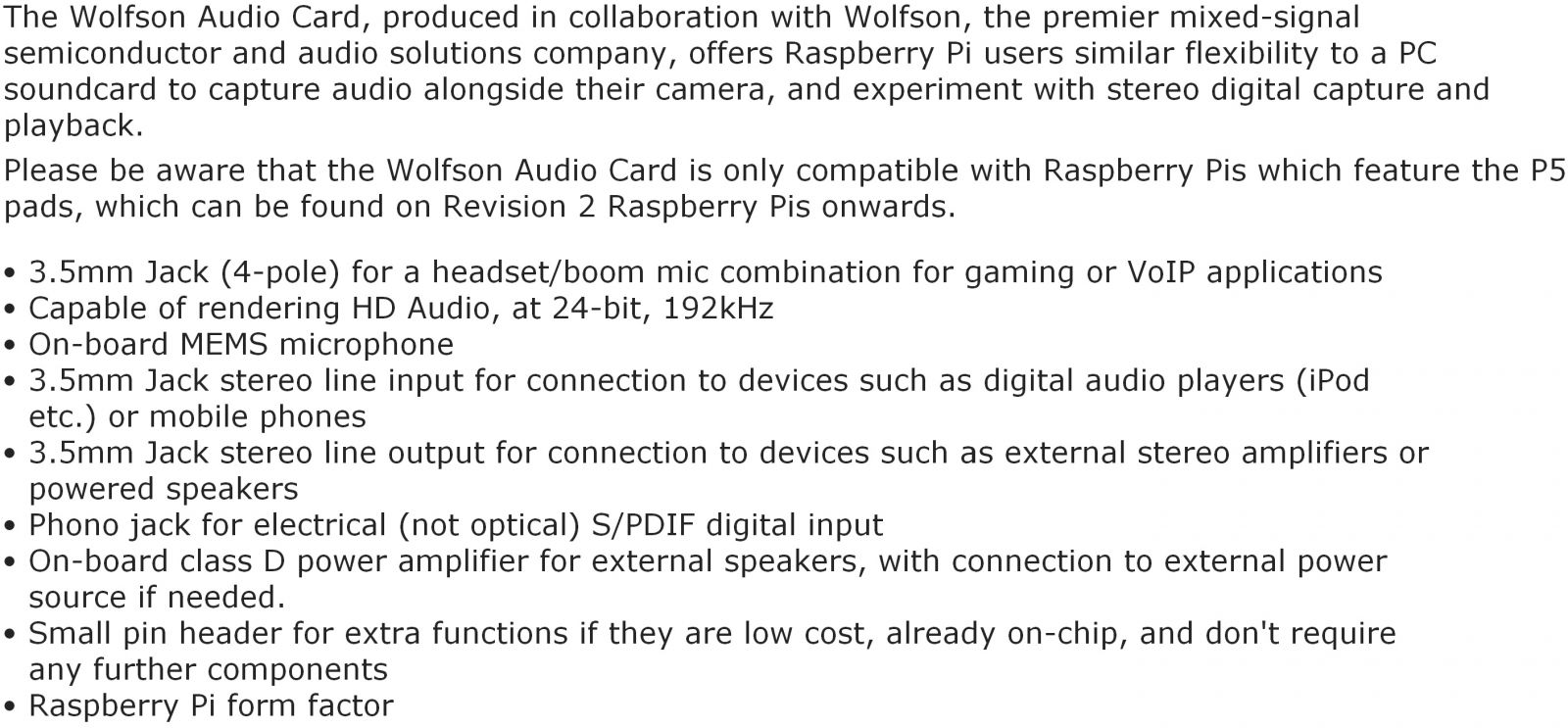 | 4627432 כרטיס קול מקצועי עבור RASPBERRY PI MODEL B | WOLFSON ELECTRONICS | כרטיס קול מקצועי עבור RASPBERRY PI MODEL B ... מוצרי פיתוח לאלקטרוניקה » מוצרי פיתוח לאלקטרוניקה - RASPBERRY PI | כמות |
