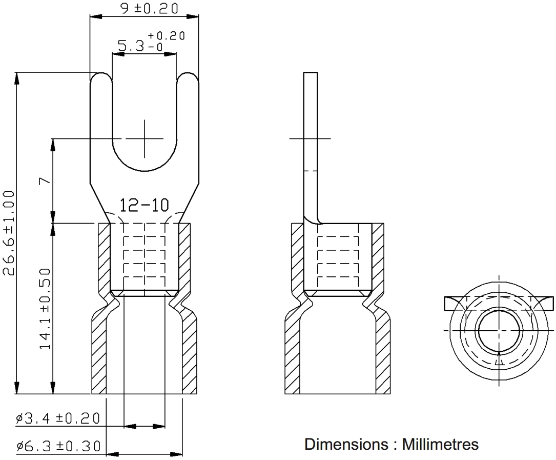 ♦ עבור כבלים : 2.6-6.6MM , 16-14AWG