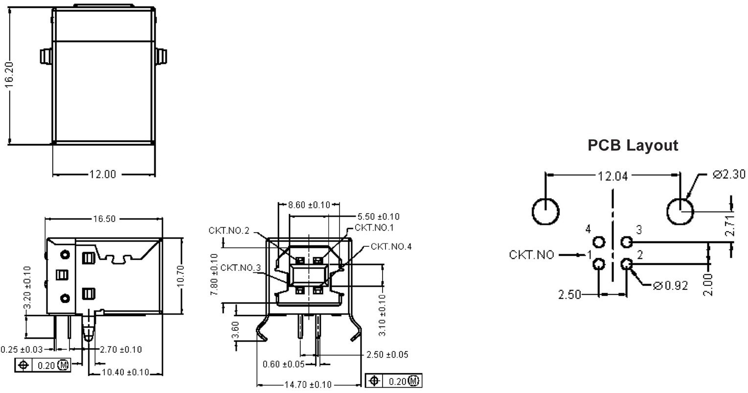 שקע (USB2.0 (B זוויתי למעגל מודפס