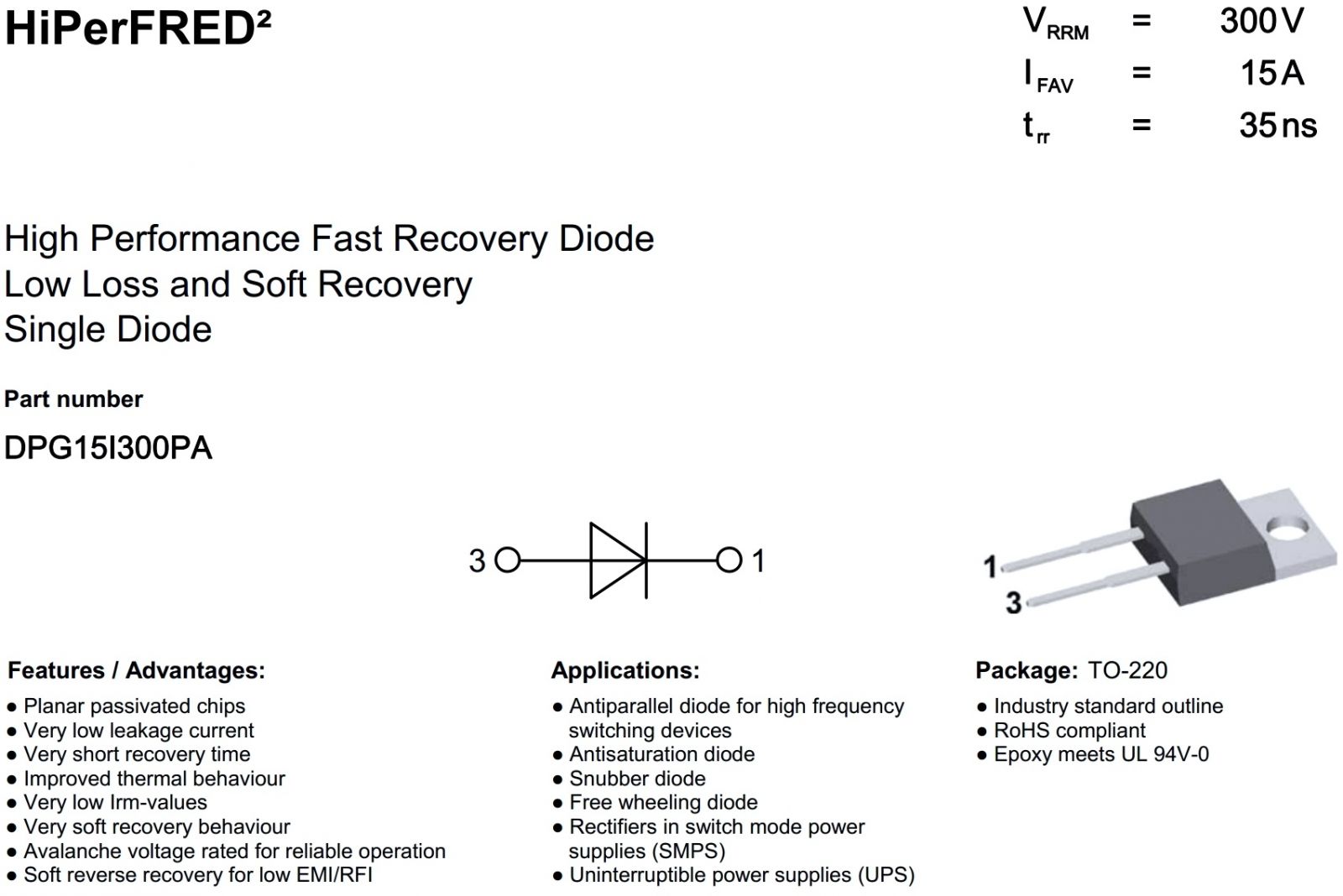 | 0327241 דיודה - 300V 15A - FAST RECOVERY | IXYS | דיודה - 300V 15A - FAST RECOVERY ♦ דגם הדיודה : DPG15I300PA♦ מבנה הדיודה : TO-... רכיבי אלקטרוניקה » דיודות / גשרי דיודות | כמות |