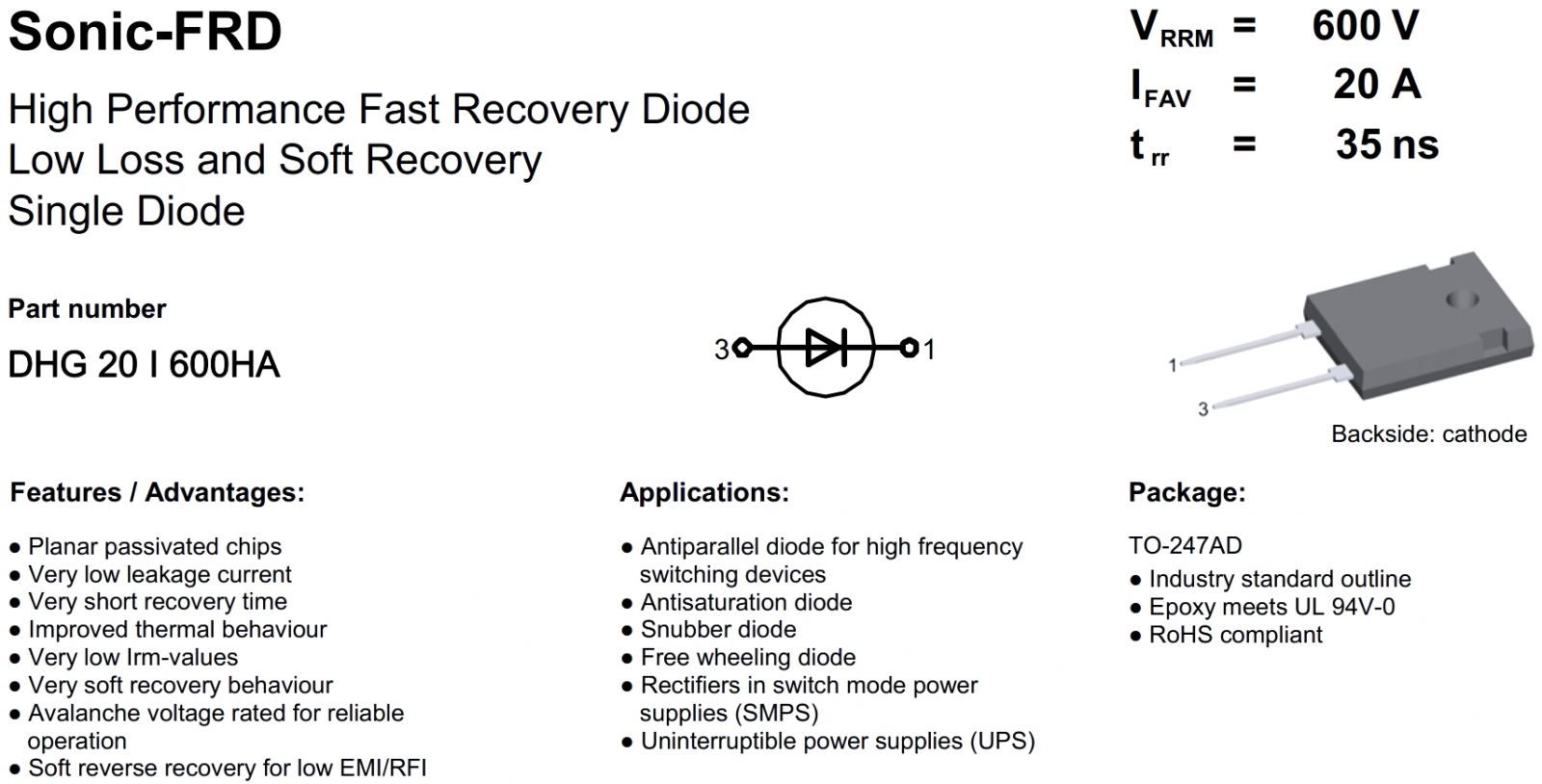 | 0227241 דיודה - 600V 20A - FAST RECOVERY | IXYS | דיודה - 600V 20A - FAST RECOVERY ♦ דגם הדיודה : DHG20I600HA♦ מבנה הדיודה : TO-... רכיבי אלקטרוניקה » דיודות / גשרי דיודות | כמות |