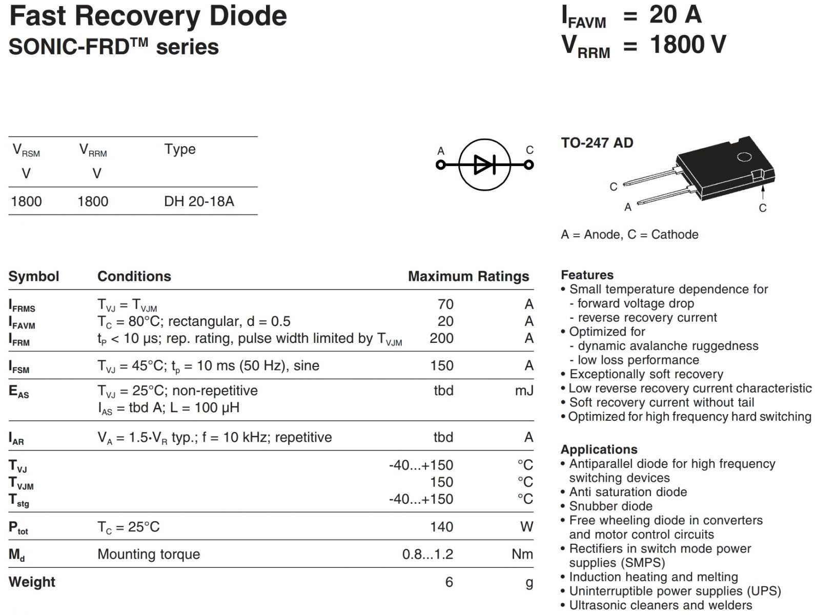 | 4127241 דיודה - 1800V 20A - FAST RECOVERY | IXYS | דיודה - 1800V 20A - FAST RECOVERY ♦ דגם הדיודה : DH20-18A♦ מבנה הדיודה : TO-24... רכיבי אלקטרוניקה » דיודות / גשרי דיודות | כמות |