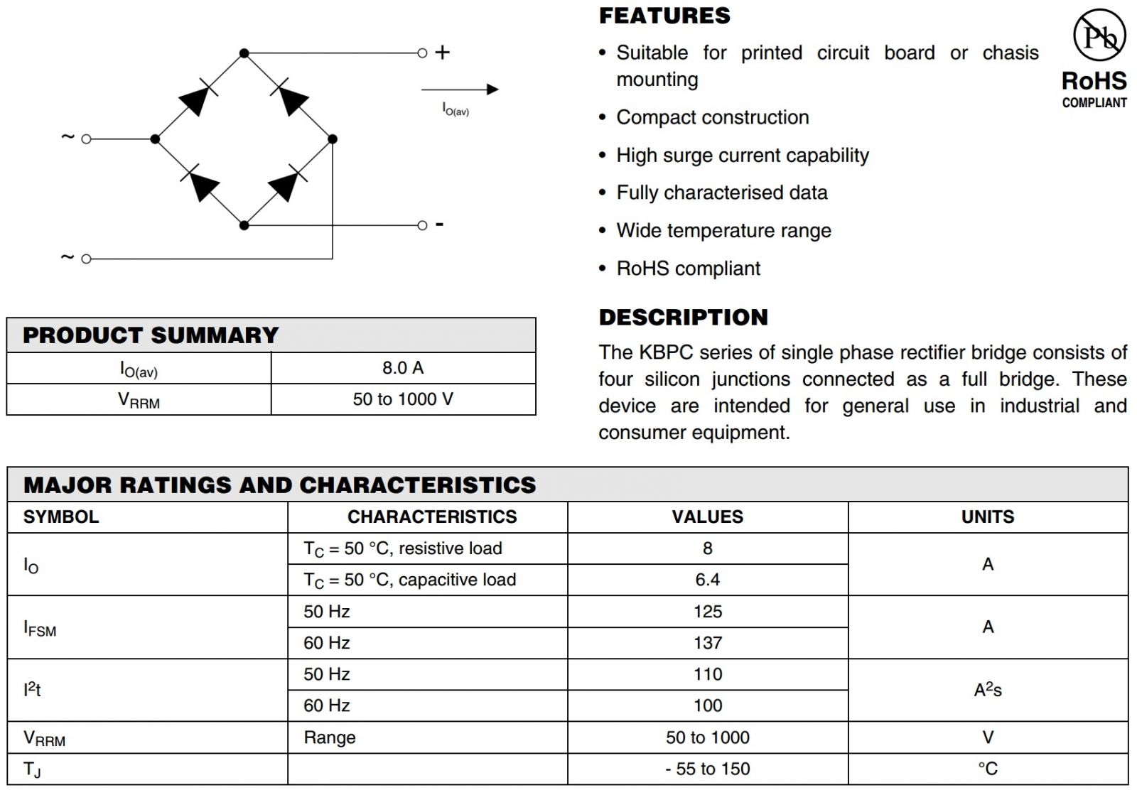 VISHAY 8A SINGLE PHASE BRIDGE RECTIFIERS - KBPC SERIES VISHAY 8A SINGLE PHASE BRIDGE RECTIFIERS - KBPC SERIES