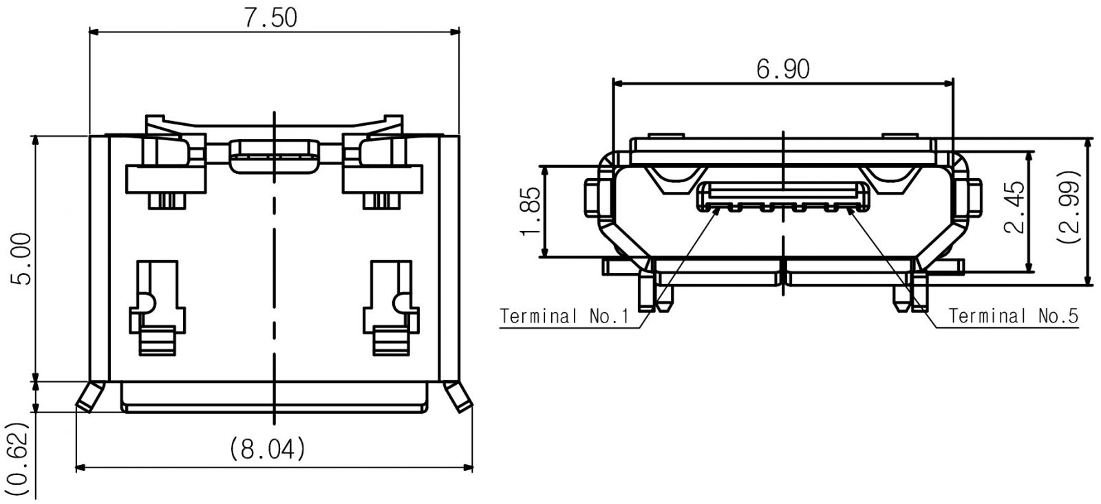 שקע (USB2.0 (MICRO B זוויתי למעגל מודפס