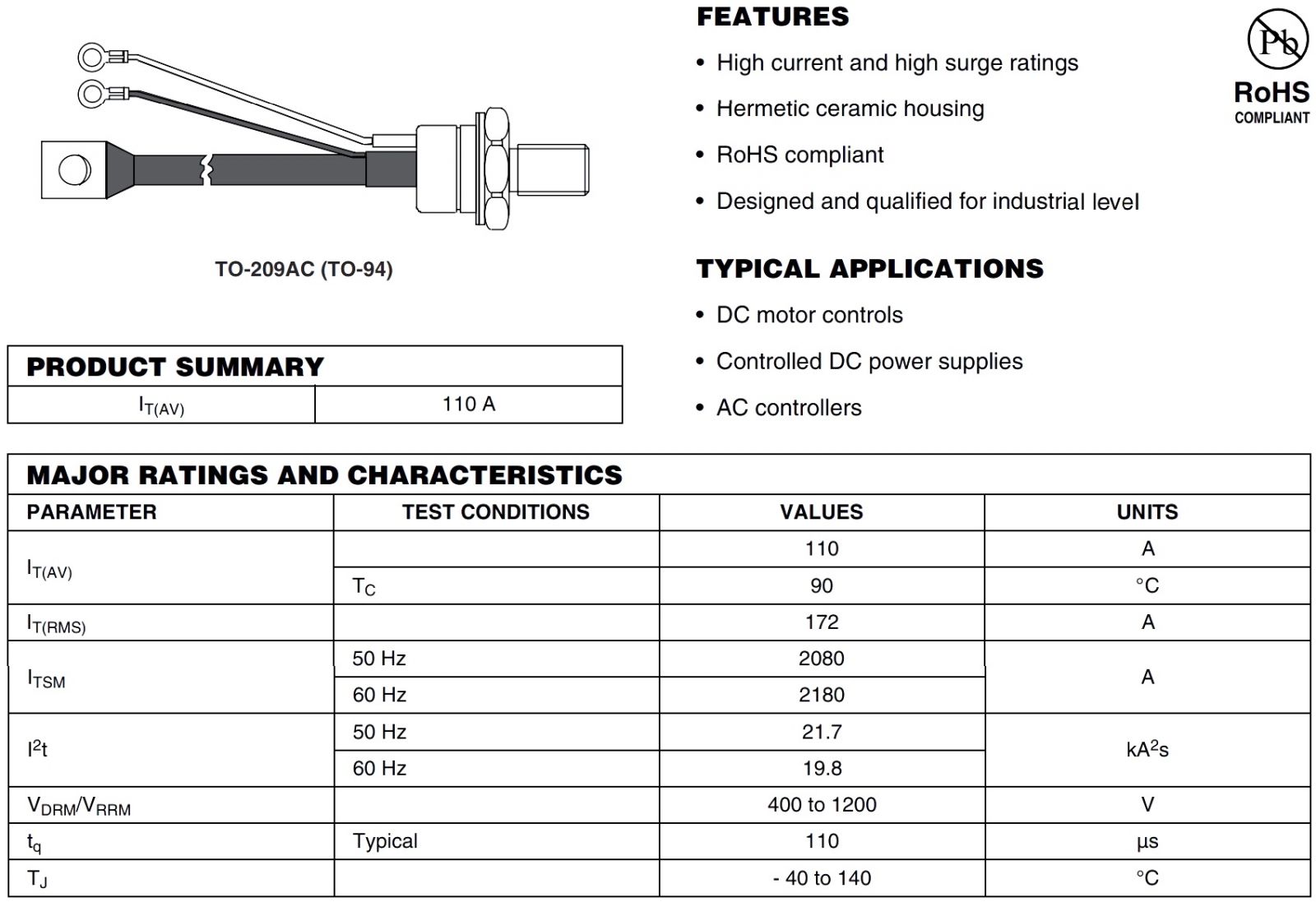 | 3134019 טריסטור 1200V 110A - IGT 100MA - TO-94 | VISHAY | טריסטור 1200V 110A - IGT 120MA - TO-94 ♦ דגם הטריסטור : 110RKI120♦ מבנה הטריסט... רכיבי אלקטרוניקה » טריסטורים - DIAC / TRIAC / SCR | כמות |