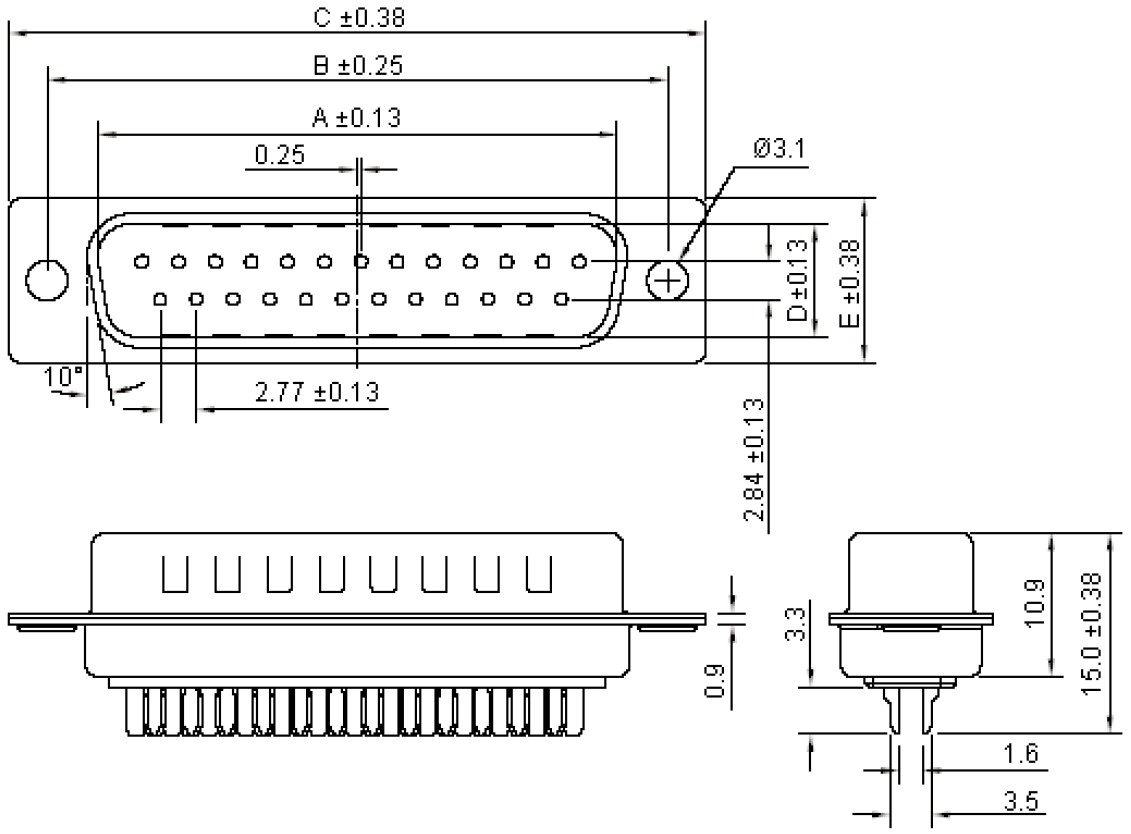 מחבר D-TYPE להלחמה - נקבה 50 מגעים