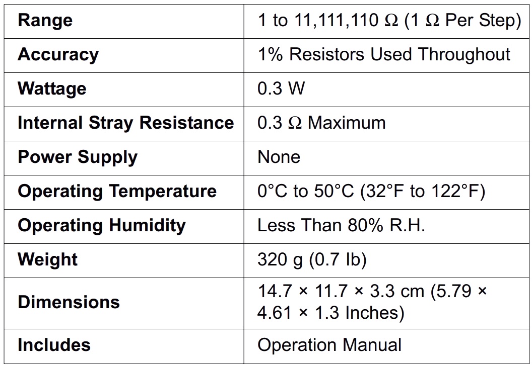 קופסת נגדים (דקדה) - 1ohm ~ 11.11111Mohm