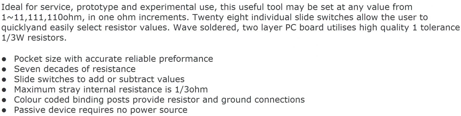 | 4548094 קופסת נגדים (דקדה) - 1ohm ~ 11.11111Mohm | TENMA | קופסת נגדים (דקדה) - 1ohm ~ 11.11111Mohm ... רכיבי אלקטרוניקה » נגדים לאלקטרוניקה | כמות |