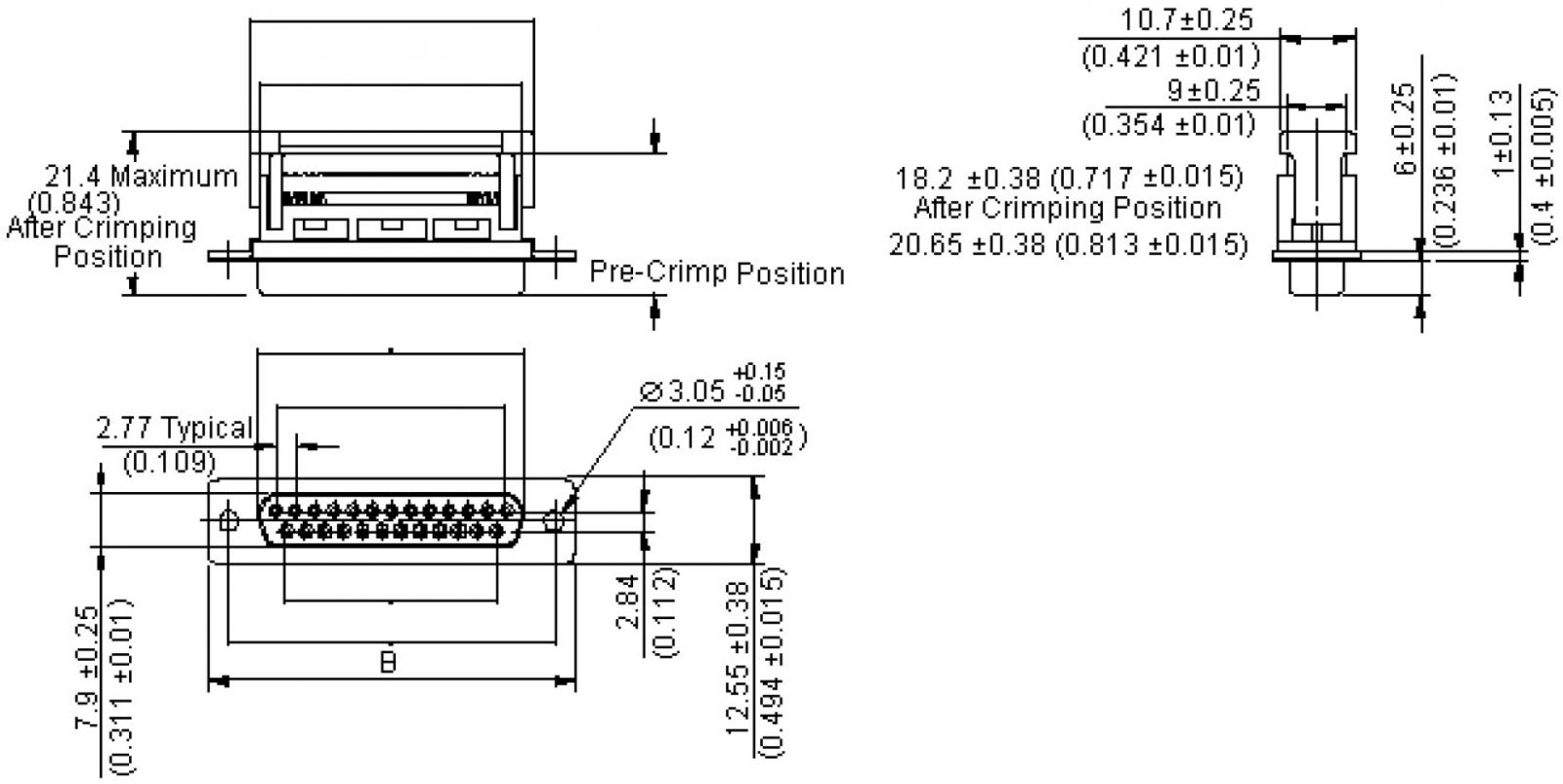 מחבר D-TYPE ללחיצה לכבל שטוח - זכר 15 מגעים