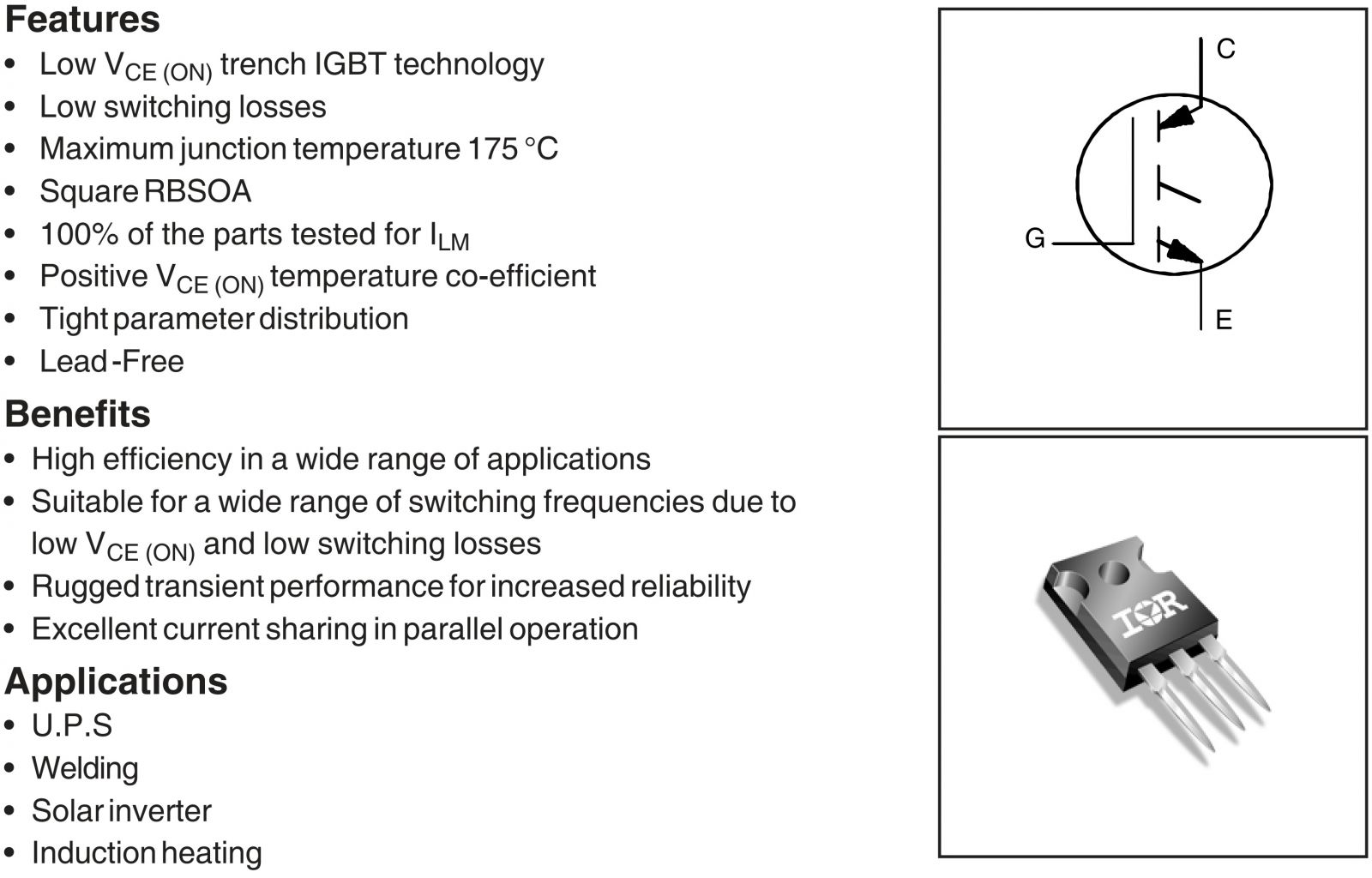 טרנזיסטור IGBT - 1200V 90A - 385W - THROUGH HOLE ♦ דגם הטרנזיסטור : IRG7PH42UPBF♦&n...