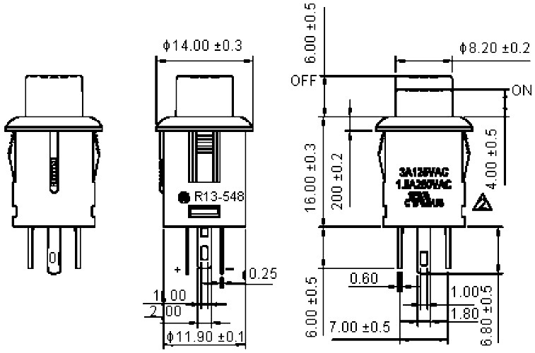 ♦ זרם מגעים מקסימלי : (1.5A (AC) , 3A (DC
