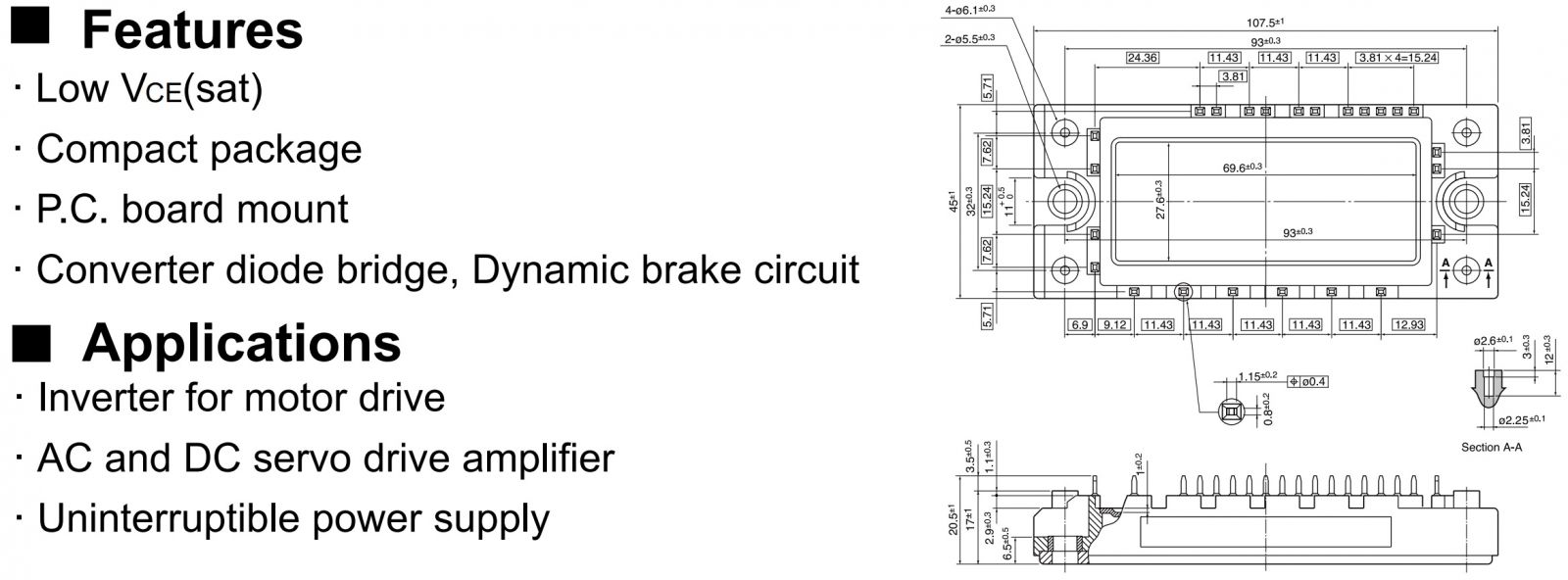 טרנזיסטור - IGBT MODULE - N CH - 1200V 150A - 700W ♦ דגם הטרנזיסטור : 6MBI100S-120-50&dia...