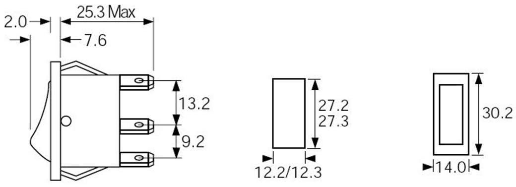 מפסק רוקר (נדנדה) ארוך - SPDT ON/OFF/ON