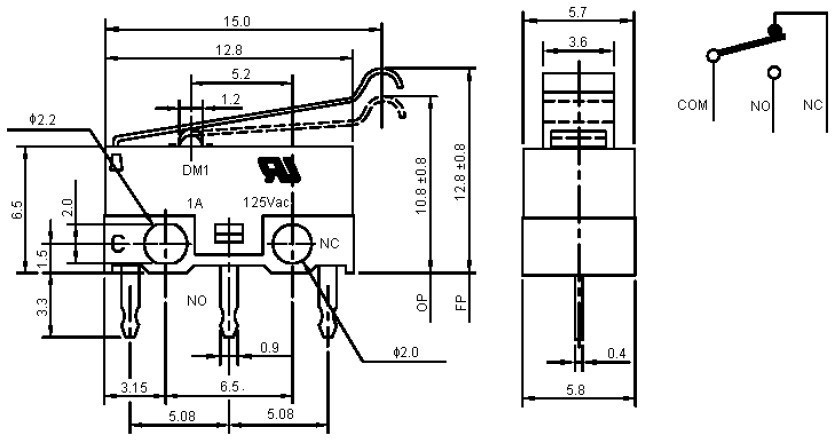 מפסק מיקרו - SPDT 1A - ידית מכופפת