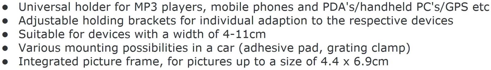 | 3719002 תושבת לסלולר , GPS , PDA | HAMA | תושבת לסלולר , GPS , PDA ♦ מתאימה למכשירים ברוחב : 4-11CM♦ ניתנת לחיבור ... Talmir Home Tech » אביזרים לסלולר | כמות |