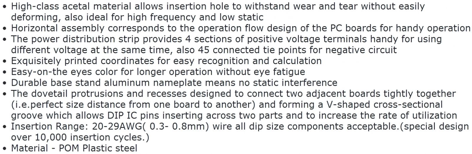| 1472852 לוח ניסוי ענק לאלקטרוניקה (מטריצה) - 220X150X31MM | WISHER ENTERPRISE | לוח ניסוי ענק לאלקטרוניקה (מטריצה) - 220X150X31MM ♦ גוף עשוי מפלסטיק POM איכותי♦ פלטת אל... מוצרי פיתוח לאלקטרוניקה » לוחות לפיתוח והרכבת מעגלים משולבים ומטריצות | לא ניתן להזמין - אזל המלאי |