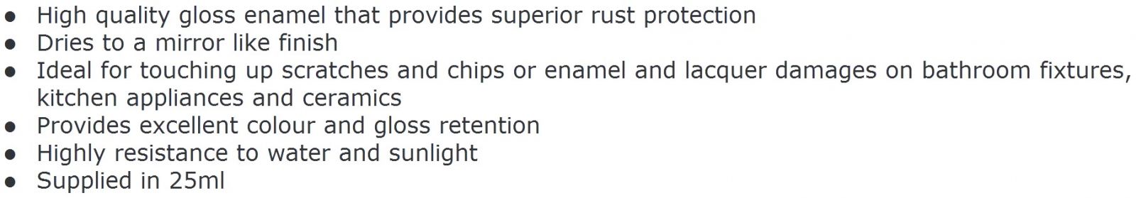 | 9152781 צבע אמייל לבן מבריק - בקבוק 25 מ''ל | EVER BUILD | צבע אמייל לבן מבריק - בקבוק 25 מ"ל... דבקים , תרסיסים וכימיקלים » דבקים , מדבקות וסרטי הדבקה | כמות |