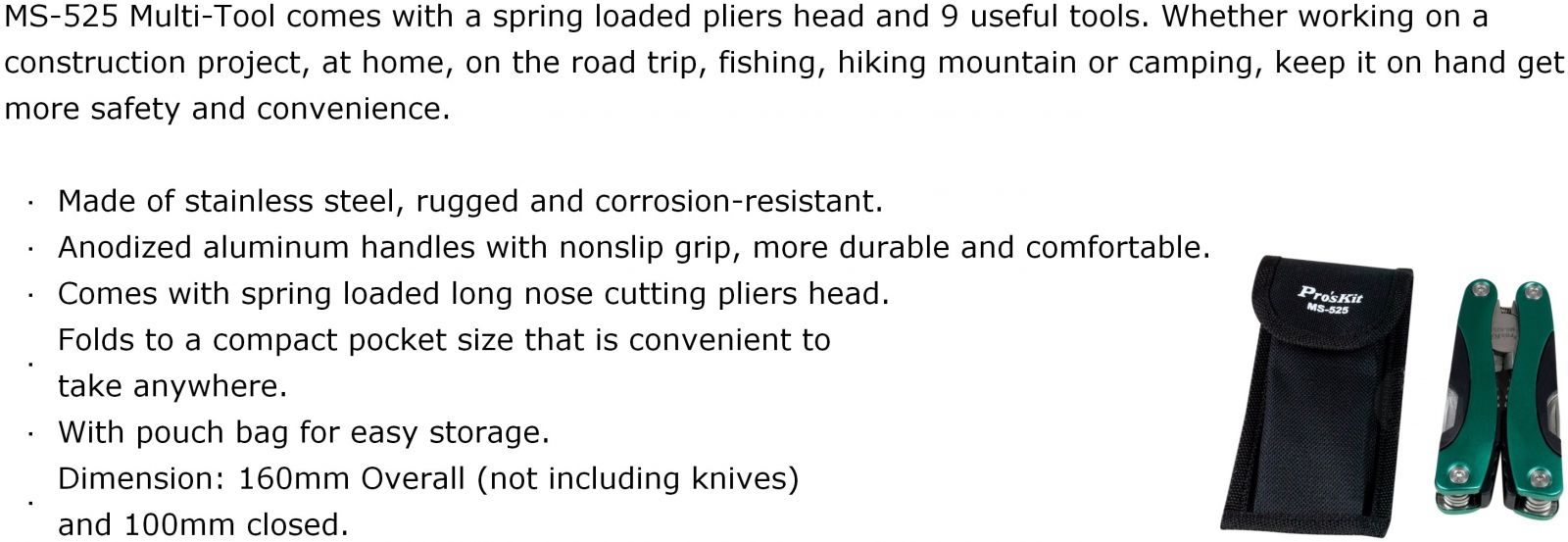 | 2470042 אולר רב-תכליתי - 9 כלים - PROSKIT MS-525 | PROSKIT | אולר רב-תכליתי - 9 כלים - PROSKIT MS-525 ♦ גוף מפלדת אל-חלד מוקשחת♦ ידיות אלומ... כלי עבודה ידניים » סכינים , מספריים וכלי חיתוך | כמות |