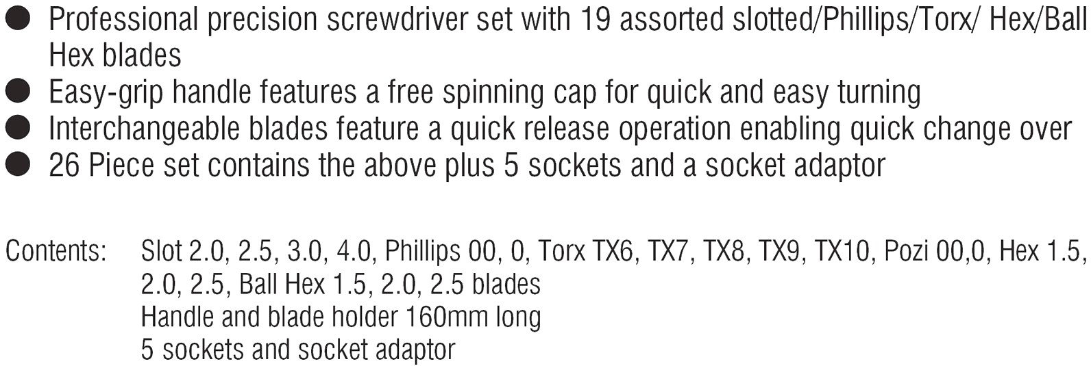 | 3734073 סט מברג לאלקטרוניקה עם ראשים מתחלפים - 26 יחידות | DURATOOL | סט מברג לאלקטרוניקה עם ראשים מתחלפים - 26 יחידות ♦ כולל : ביטים שטוחים , פיליפס , כוכב , פוזיד... כלי עבודה ידניים » מברגים לאלקטרוניקה , חשמל וסטים | לא ניתן להזמין - אזל המלאי |