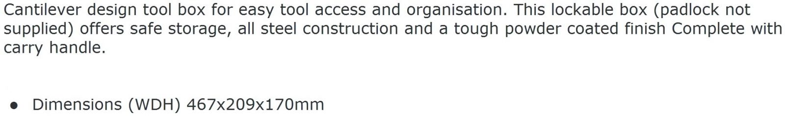 | 0275981 ארגז כלים מדורג מפלדה - CLARKE CTB500 | CLARKE | ארגז כלים מדורג מפלדה - CLARKE CTB500 ♦ בנוי מפלדה חזקה מגולוונת צבועה בצבע אדום איכותי ועמיד... ארגזי כלים ופתרונות אחסון » ארגזי כלים , מזוודות טכנאים ותיקים לכלי עבודה | לא ניתן להזמין - אזל המלאי |
