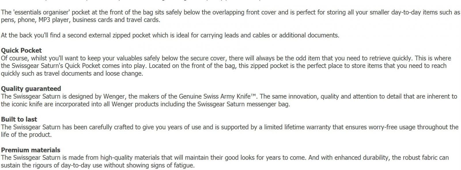 | 9533091 תיק צד למחשב נייד - SWISS GEAR SATURN | SWISS GEAR | תיק צד למחשב נייד - SWISS GEAR SATURN ♦ מתאים למחשבים ניידים עם מסך עד "17♦ רצועת כתף חזקה ונוחה... ארגזי כלים ופתרונות אחסון » תיקי גב , תיקי צד ותיקי טרולי למחשבים ניידים | לא ניתן להזמין - אזל המלאי |