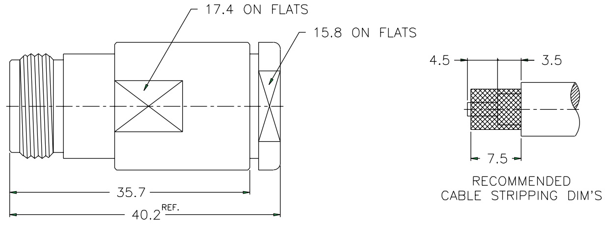 מחבר N TYPE - נקבה להלחמה לכבל RG213