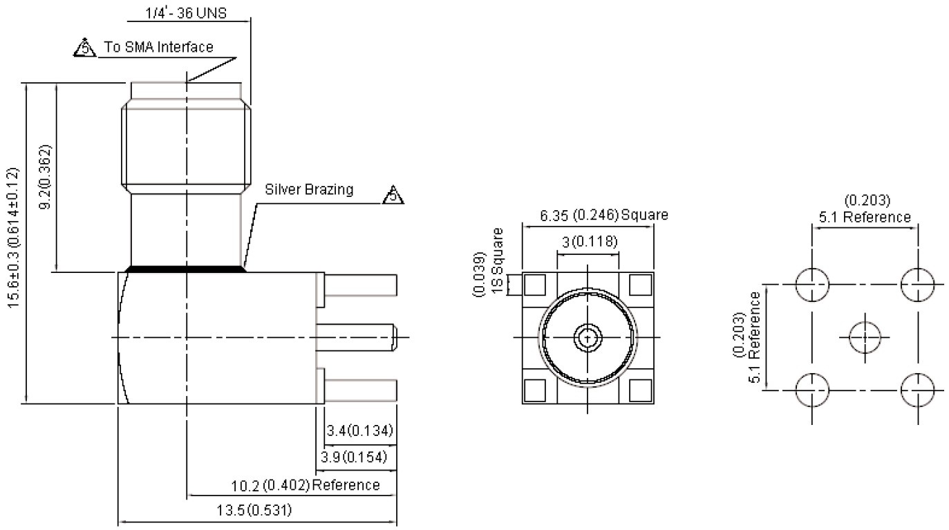 מחבר SMA - נקבה זוויתית להלחמה למעגל מודפס