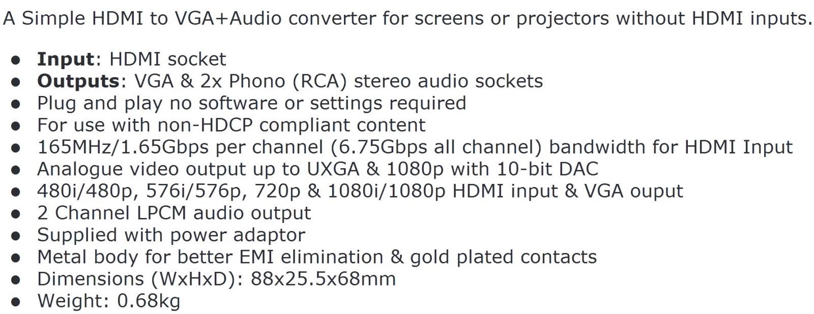 | 6063112 ממיר אקטיבי - HDMI TO VGA + AUDIO | PRO-SIGNAL | ממיר אקטיבי - HDMI TO VGA + AUDIO ♦ כניסה : HDMI♦ יציאה : VGA + 2XRCA♦ תומ... Talmir Home Tech » ציוד היקפי למחשבים | כמות |