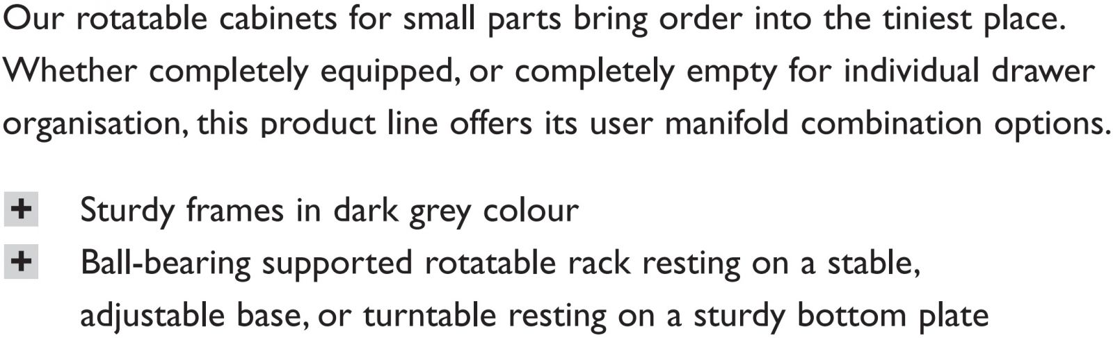 | 6892857 ארונית מסתובבת 76 מגירות לאחסון רכיבים - 462X378X325MM | ALLIT | ארונית מסתובבת 76 מגירות לאחסון רכיבים - 462X378X325MM ♦ מעטפת פלסטיק קשיחה וחזקה♦ מגש ... ארגזי כלים ופתרונות אחסון » פתרונות אחסון ושינוע לרכיבים וכלי עבודה | לא ניתן להזמין - אזל המלאי |