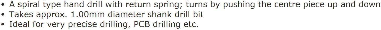 | 5354442 מיני מקדחה ידנית ארכימדס קפיצי - DURATOOL D02331 | DURATOOL | מיני מקדח ארכימדס קפיצי - DURATOOL D02331 ♦ אורך כללי : 100MM♦ תפס מקדח מקסימלי : 1MM... כלי עבודה ידניים » שונות - כלי עבודה ידניים | כמות |