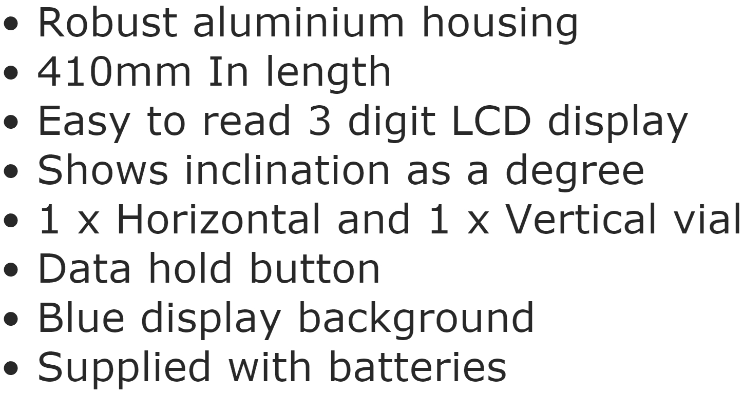 | 8744442 פלס דיגיטלי מקצועי מאלומיניום - DURATOOL - 410MM | DURATOOL | פלס דיגיטלי מקצועי מאלומיניום - DURATOOL - 410MM ♦ תצוגת LCD מוארת גדולה♦ מפלס... כלי עבודה ידניים » כלי מדידה שונים | כמות |