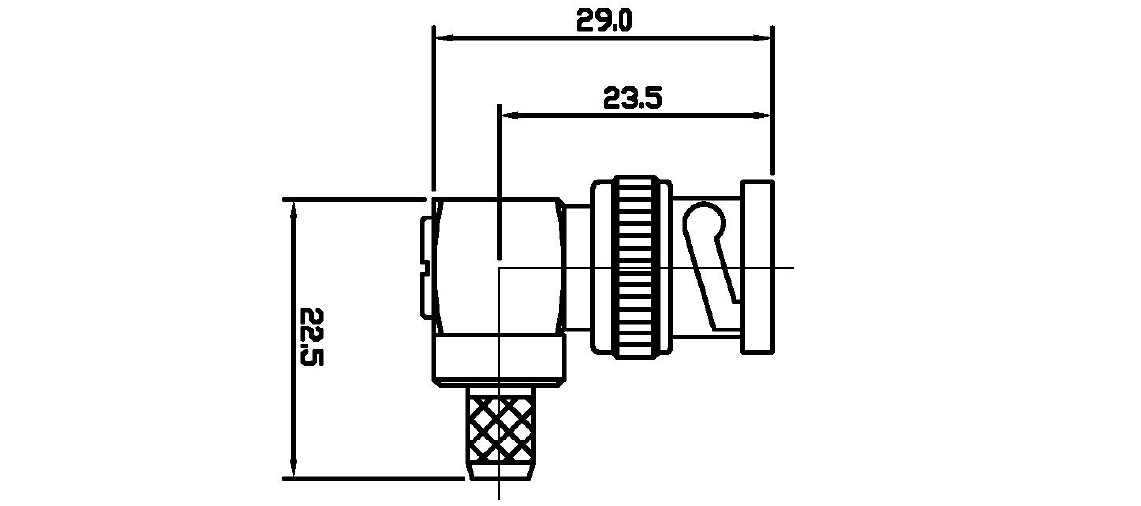 מחבר BNC - זכר זוויתי ללחיצה לכבל RG59