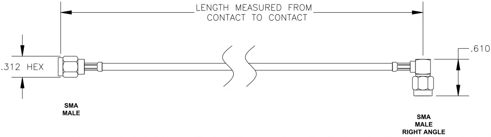 כבל קואקסיאלי - SMA (M-R/A) ~ SMA (M) - RG174 - 1.5M