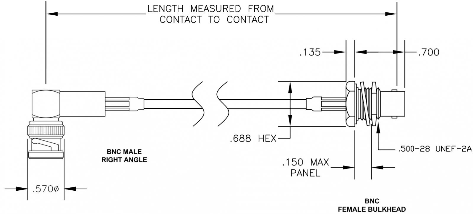 כבל קואקסיאלי - BNC (M-R/A) ~ BNC (F-B/H) - RG178 - 15M