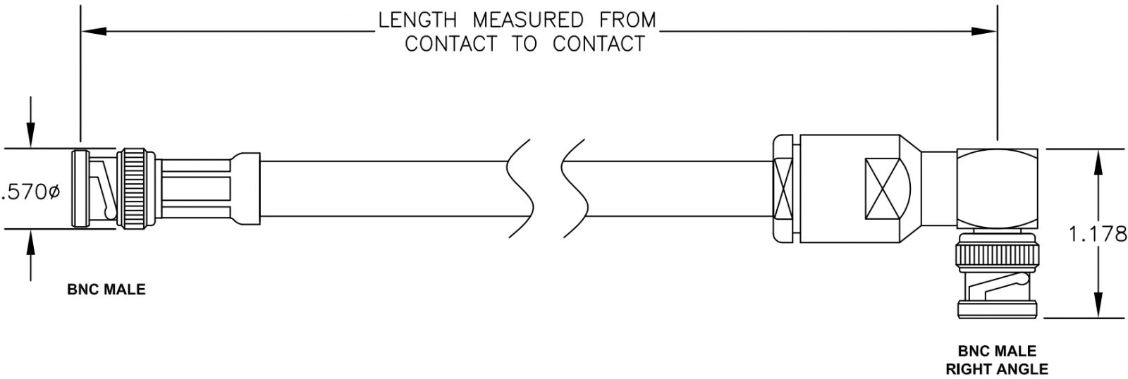 כבל קואקסיאלי - BNC (M-R/A) ~ BNC (M) - RG213 - 2M