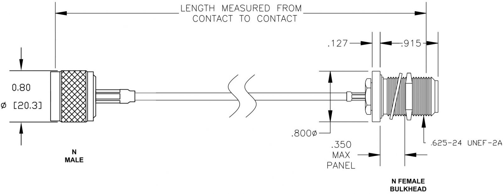 כבל קואקסיאלי - N (M) ~ N (F-B/H) - RG174 - 0.25M