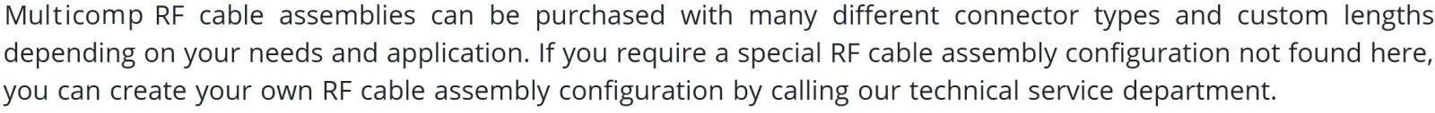 MULTICOMP SMA TO BNC CABLES USING RG179 COAX