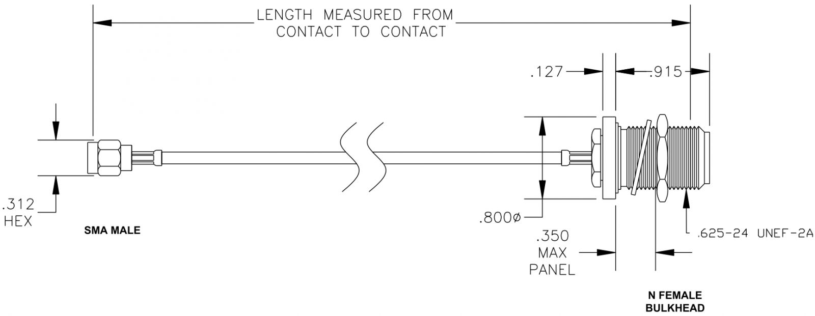 כבל קואקסיאלי - SMA (M) ~ N (F-B/H) - RG174 - 2M