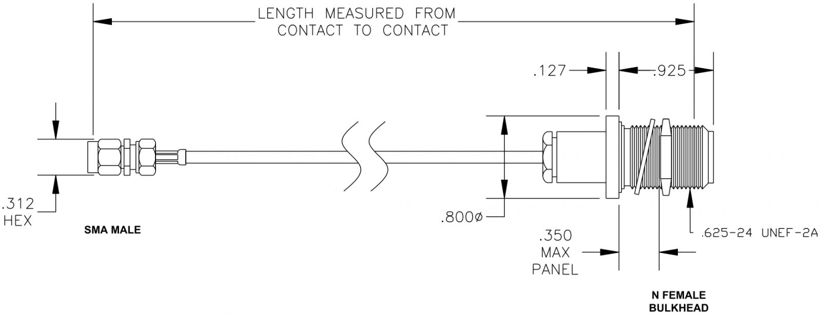 כבל קואקסיאלי - SMA (M) ~ N (F-B/H) - RG178 - 15M