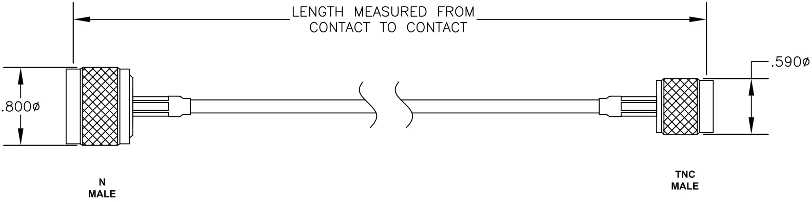 כבל קואקסיאלי - TNC (M) ~ N (M) - RG174 - 10M