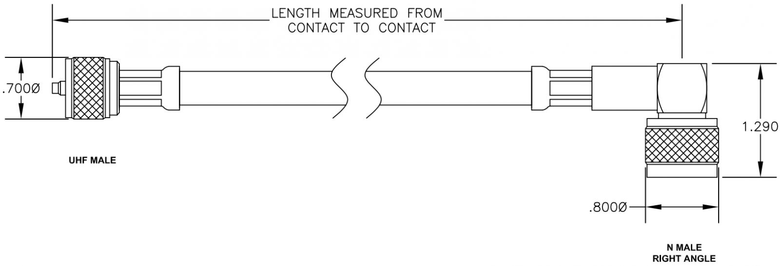 כבל קואקסיאלי - N (M-R/A) ~ UHF (M) - RG214 - 2M