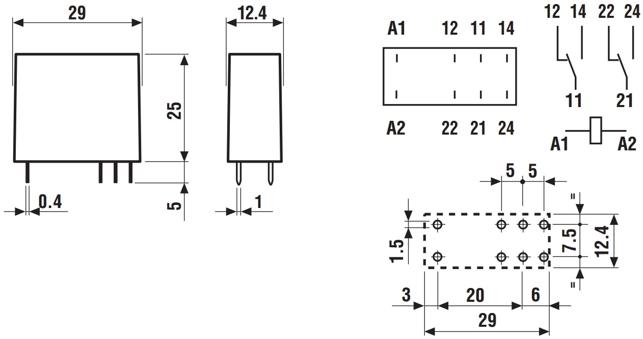 ממסר אלקטרוני למעגל מודפס - 240VAC 2C/O 8A