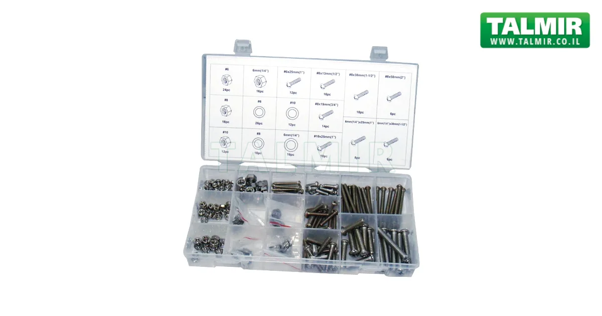 סט ברגים ואומים - 224 יחידות - DURATOOL DURATOOL ועוד פתרונות זיווד לאלקטרוניקה. לחצו למיפרט טכני מלא. צרו קשר לייעוץ מקצועי: 04-8520233