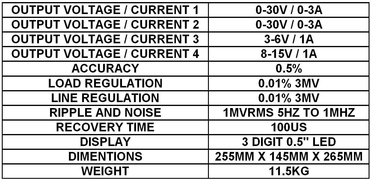 ספק כוח מעבדתי - ADJ - ארבע יציאות - (0-30V / 0-3A + 3-6V / 8-15V)
