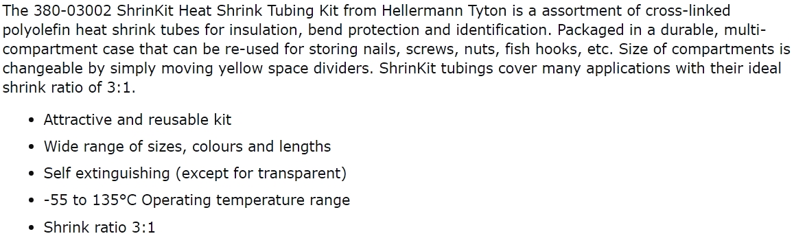 | 3622031 קיט שרוולי בידוד מתכווץ - יחס כיווץ 3:1 - HT 875K | HELLERMANN TYTON | קיט שרוולי בידוד מתכווץ - יחס כיווץ 3:1 - HELLERMANN TYTON 875K ♦ טמפרטורת כיווץ : 90°... כבלים ואביזרים לכבלים » אביזרים לכבלים ובידוד מתכווץ | כמות |